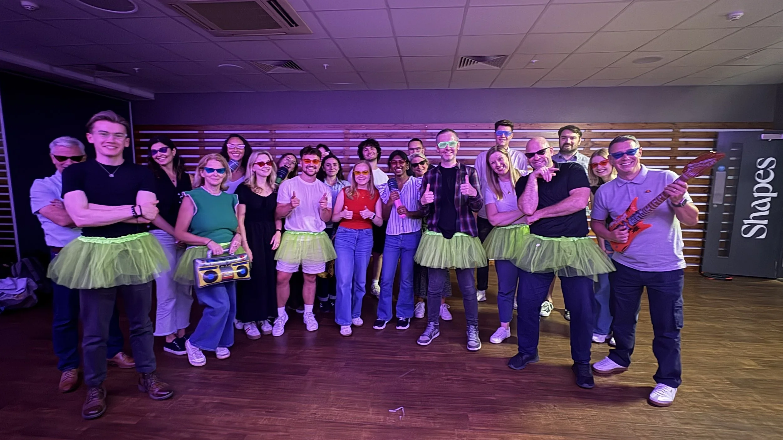 Choose from themes like burlesque sass, 80s & 90s nostalgia, Beyoncé diva power, disco fever, pop icons, or even a Halloween Thriller special. Each theme comes alive with matching props — from feather boas and neon skirts to inflatable microphones and shades. Want something unique? No problem — we’ll tailor the music, choreography, and vibe to match your group.